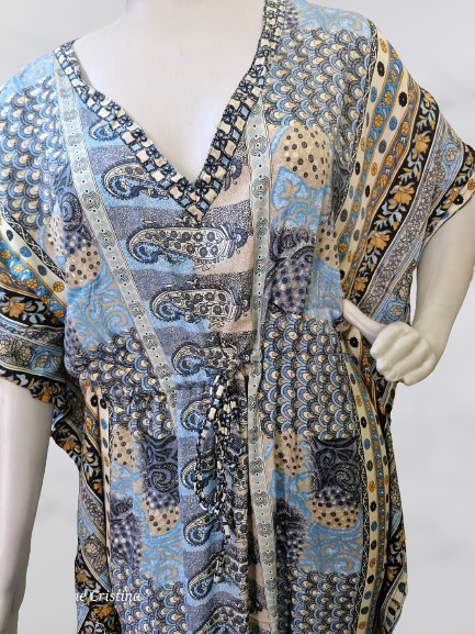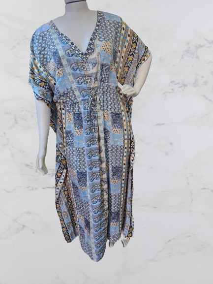 Este kaftan é ideal para eventos especiais, festas, ou até mesmo para um dia relaxante, oferecendo estilo e conforto em uma única peça. Adicione um toque de elegância exótica ao seu guarda-roupa com nosso Kaftan Longo de Seda Indiana Plus Size!