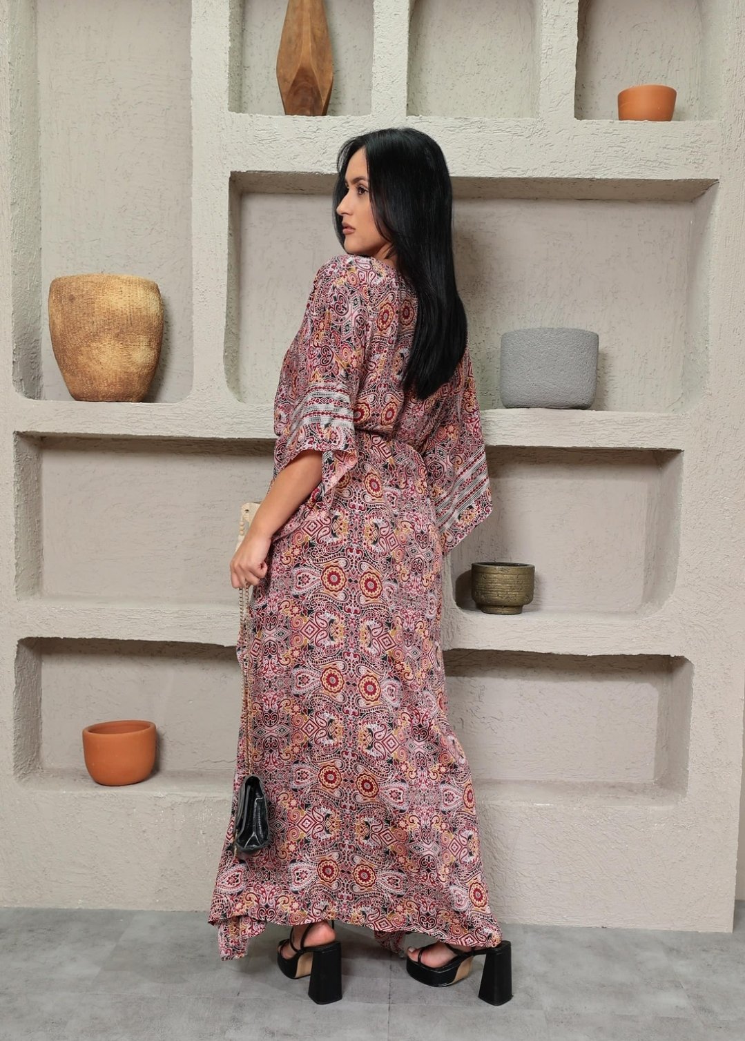 Este kaftan é ideal para eventos especiais, festas, ou até mesmo para um dia relaxante, oferecendo estilo e conforto em uma única peça. Adicione um toque de elegância exótica ao seu guarda-roupa com nosso Kaftan Longo de Seda Indiana Plus Size!