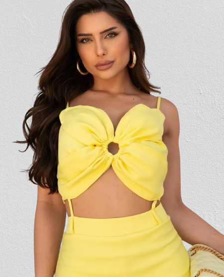 💗 Descrição: Vestido curto com detalhe de nó central, ideal para dias quentes. Com um design moderno e caimento impecável, é perfeito para quem busca estilo e conforto em uma única peça.